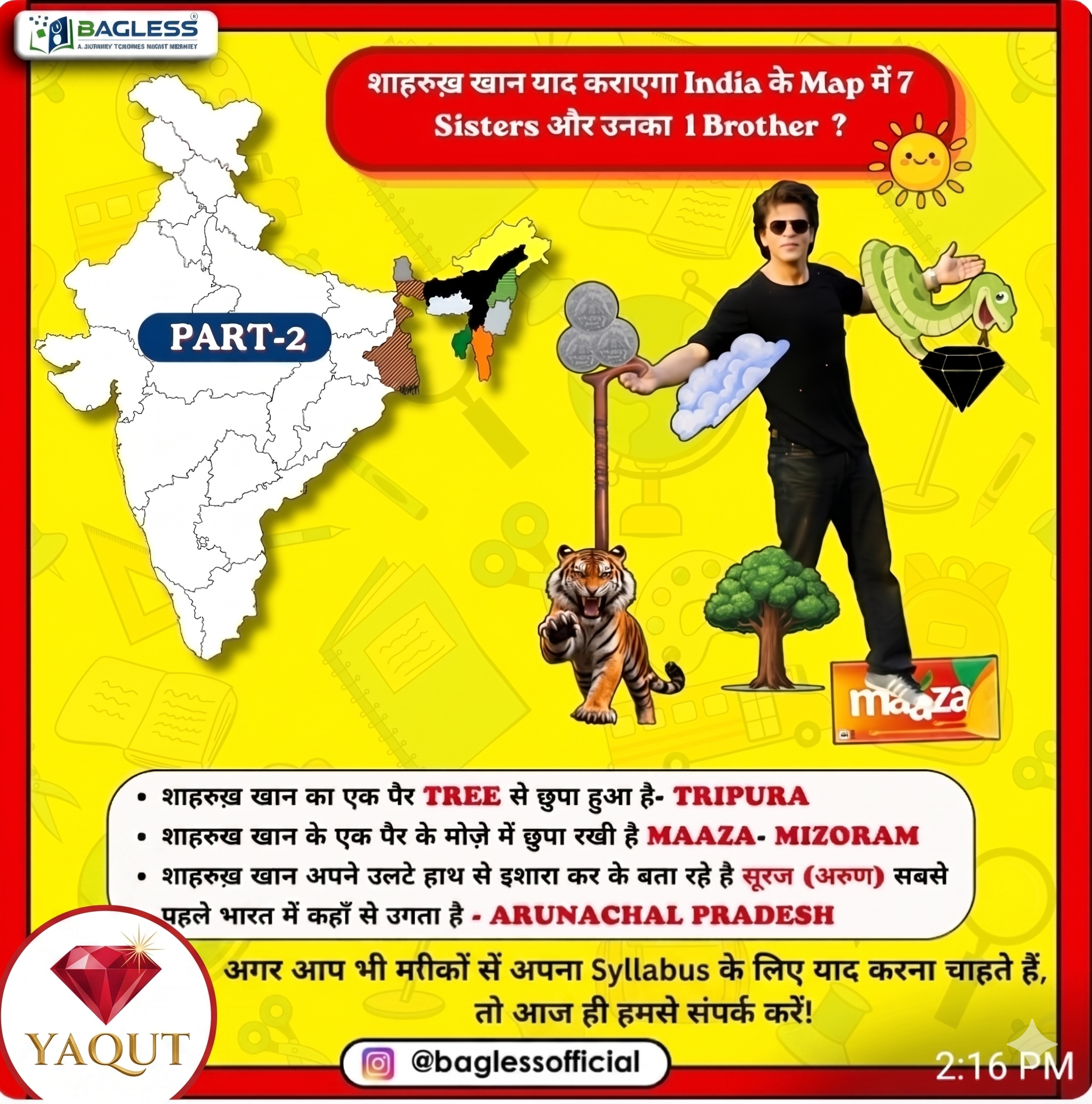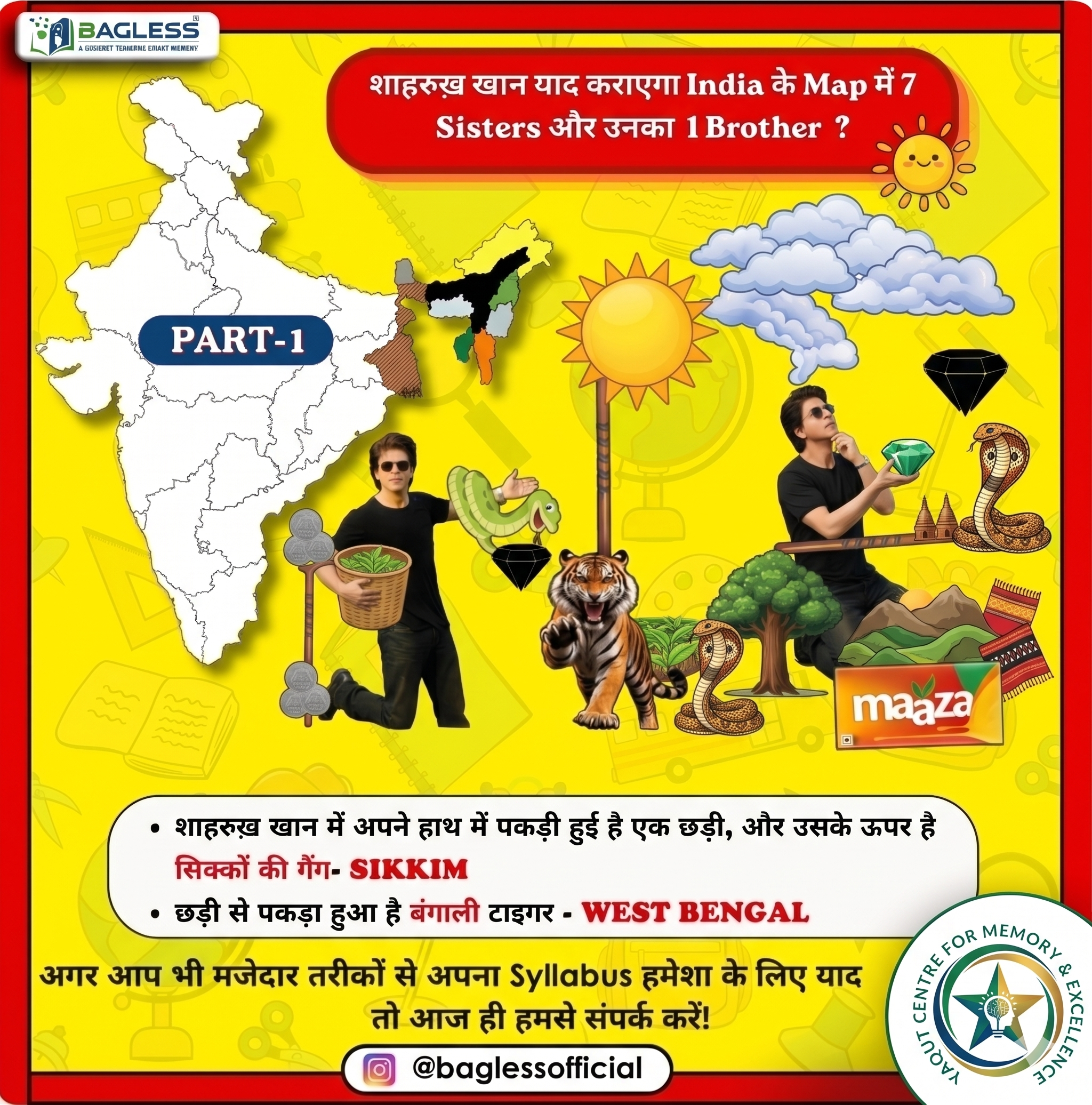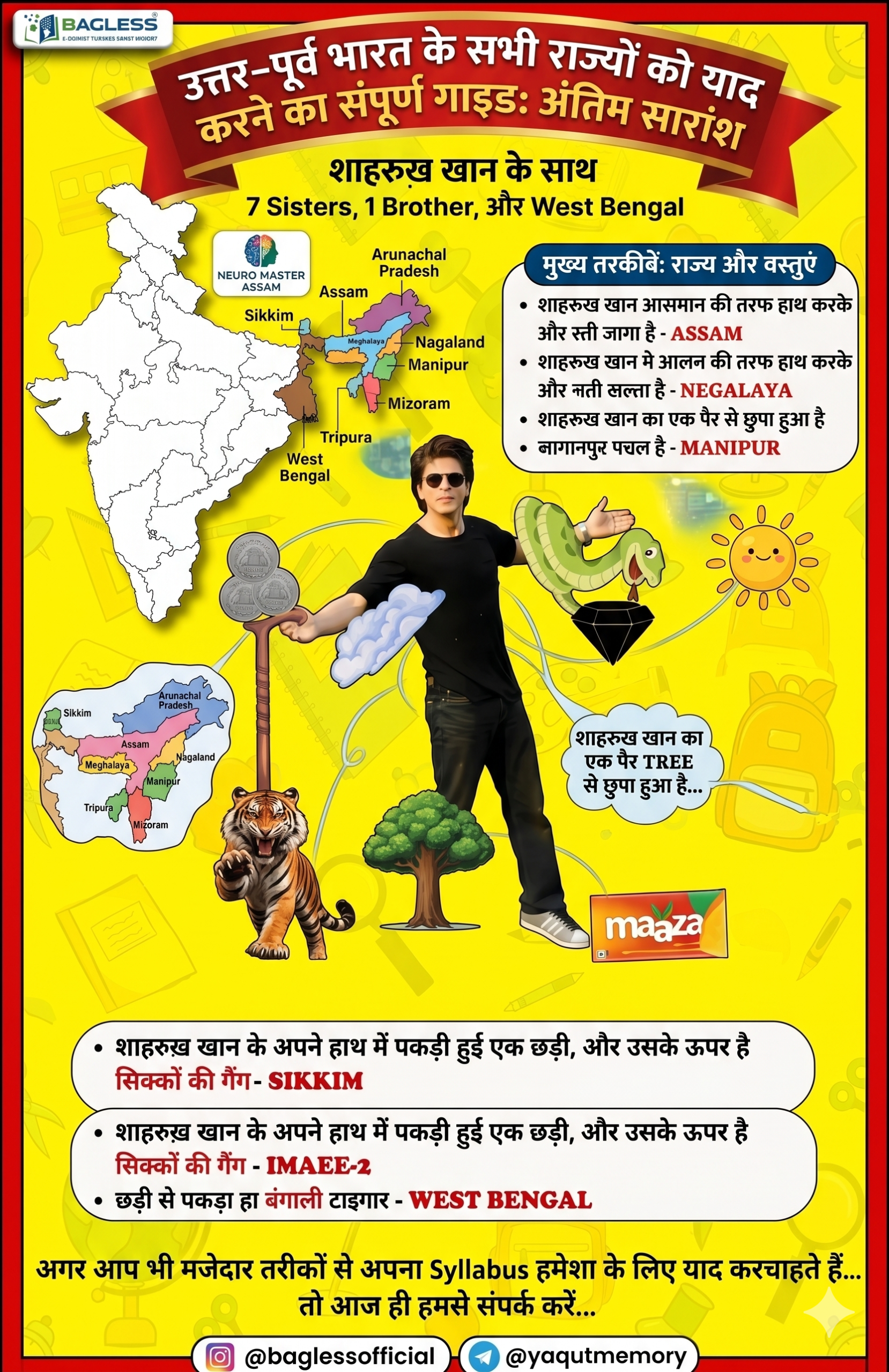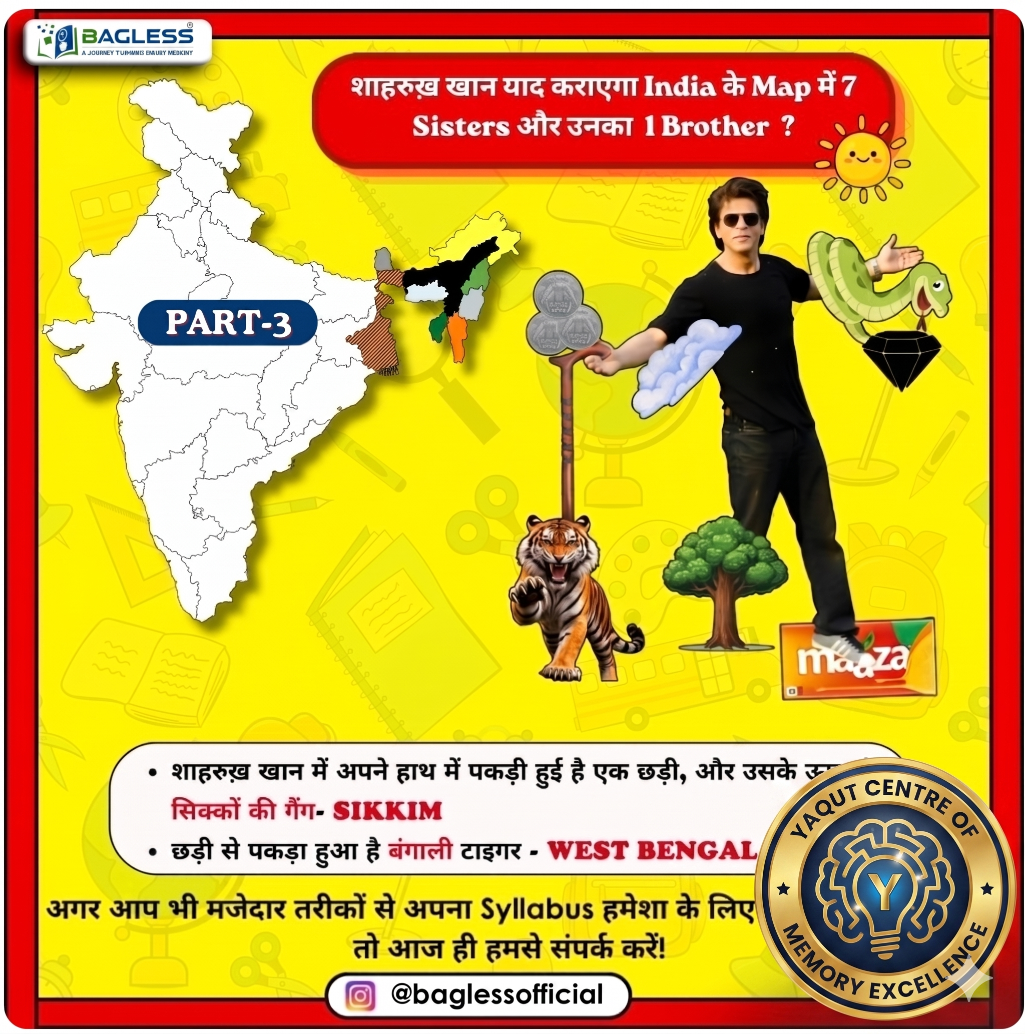To demonstrate how we take memory to a “different level,” let’s look at our latest viral technique for mastering the Seven Sister States. Instead of memorizing a list, we use a “Visual Anchor”—in this case, Bollywood icon Shah Rukh Khan—to act as a mental map.